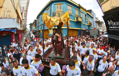 Após a missa, os fiéis seguem em procissão com a imagem do Senhor dos Passos, representação de Jesus carregando a cruz, em direção à Basílica Santuário de Nossa Senhora de Nazaré. O percurso atravessa os bairros da Cidade Velha, Campina e Nazaré, reunindo dezenas de devotos que acompanham o trajeto em oração da Via-Sacra.